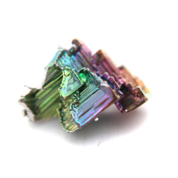 Bizmut je fascinujúci element s dúhovým leskom, ktorý sa v prírode vyskytuje len vzácne – a preto sa jeho kryštalická forma väčšinou vytvára v laboratóriu z čistého bizmutu. Tento kov má výnimočnú schopnosť usporiadať sa do geometrických, stupňovitých tvarov, ktoré pôsobia ako malé portály do vesmíru.