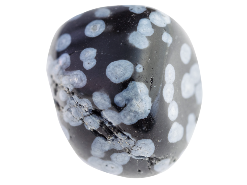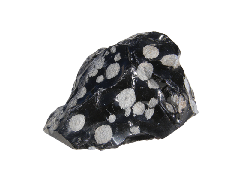 Vločkový obsidián, známy aj ako snehový obsidián, je prírodné vulkanické sklo s jedinečnými bielymi kryštalickými štruktúrami pripomínajúcimi snehové vločky. Tieto "vločky" sú vlastne minerál kristobalit, ktorý vytvára kontrastné zhluky na čiernom podklade – čo robí z každého kúsku unikát.