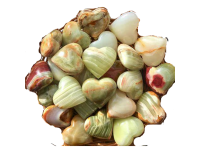- Farba: Priesvitná až mliečna zelená, béžová, biela, hnedá, zlatistá. Jemné pásiky a vrstvy dodávajú kameňu umelecký vzhľad.